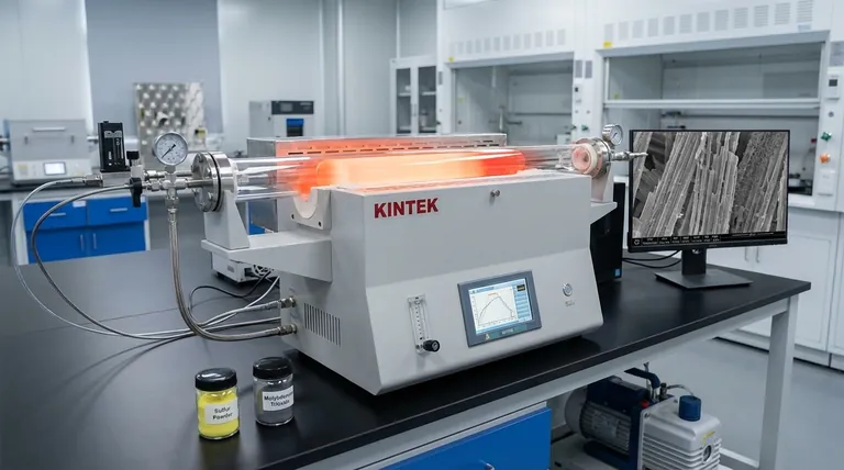Para obter o crescimento controlado de nanotubos de MoS2, o forno deve gerenciar simultaneamente a energia térmica e o suprimento de material.
