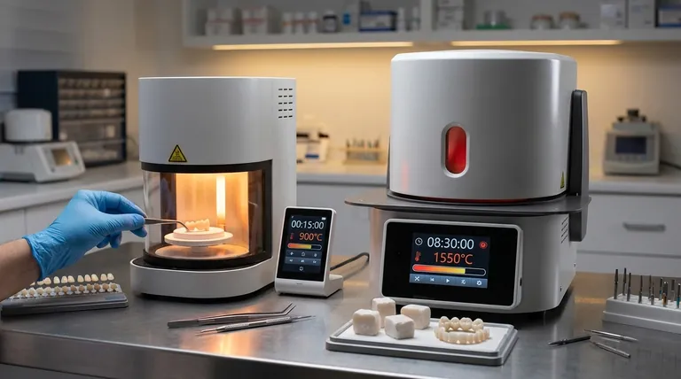 A diferença fundamental não é apenas o tempo, mas o propósito. Fornos de cerâmica realizam queima rápida a temperaturas mais baixas para estética, enquanto fornos de zircônia realizam um processo de sinterização longo e a alta temperatura para transformação estrutural e resistência.