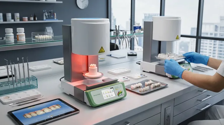 Pronto para aprimorar o processo de sinterização do seu laboratório odontológico com precisão e velocidade? Na KINTEK, aproveitamos P&D excepcional e fabricação interna para fornecer soluções avançadas de fornos de alta temperatura adaptadas para laboratórios odontológicos. Nossa linha de produtos, incluindo Fornos Mufla, Tubulares, Rotativos, Fornos a Vácuo e Atmosfera, e Sistemas CVD/PECVD, é complementada por fortes capacidades de personalização profunda para atender precisamente às suas necessidades experimentais únicas. Se você precisa de ciclos rápidos para alto rendimento ou processos controlados para qualidade superior, a KINTEK tem a expertise para entregar. Entre em contato conosco hoje para discutir como nossos fornos podem otimizar seu fluxo de trabalho e garantir restaurações de zircônia sem rachaduras e duráveis!