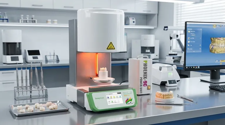 O forno de sinterização submete esta restauração pré-sinterizada a temperaturas extremamente elevadas—frequentemente até 1600°C (2912°F)—ao longo de um ciclo programado. Este processo densifica o material, encolhendo-o para o seu tamanho final e conferindo a incrível resistência pela qual a zircónia é conhecida.