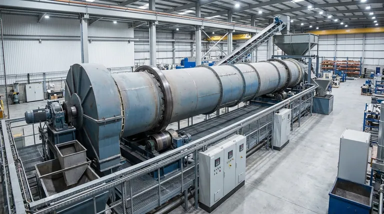 Em sua essência, um forno rotativo elétrico é um sistema integrado de cinco componentes primários trabalhando em uníssono. Estes são o corpo do forno, os dispositivos de manuseio de material para alimentação e descarga, o conjunto de rotação e suporte, os elementos de aquecimento elétricos e a unidade de controle central. Juntos, eles criam um ambiente de alta temperatura precisamente controlado para processar materiais à medida que se movem através de um cilindro rotativo.