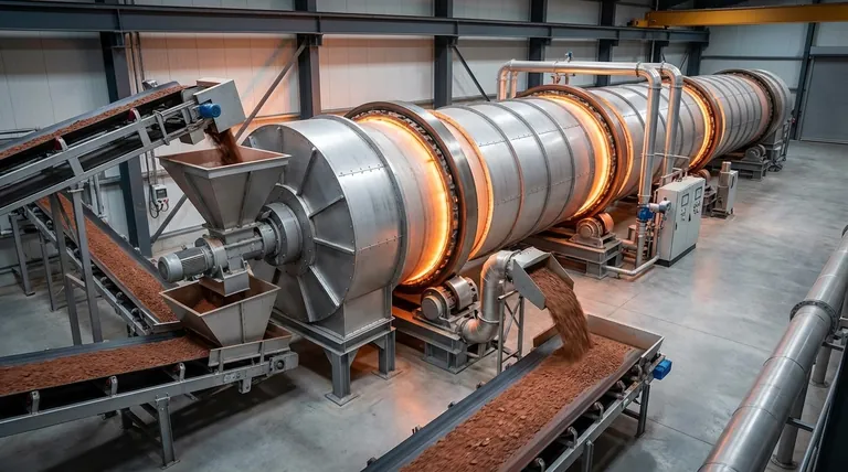 Ao contrário dos fornos tipo batelada, um forno rotativo é um sistema contínuo. O material é constantemente alimentado em uma extremidade e descarregado na outra, tornando-o ideal para o alto volume de produção exigido nas operações de mineração comerciais.