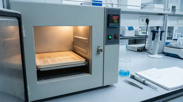 A estufa de secagem de laboratório atua como o guardião essencial, transformando um delicado revestimento líquido em uma base sólida robusta pronta para o tratamento térmico final.
