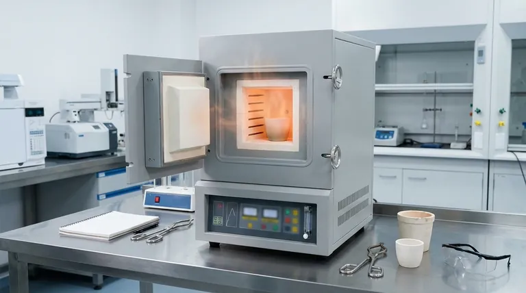 O forno de caixa fornece um ambiente oxidativo controlado que queima completamente esses componentes. Isso garante que o material catalisador final seja quimicamente puro e livre de detritos carbonáceos residuais que poderiam inibir o desempenho.