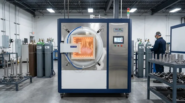 A retorta selada contém perfeitamente o gás do processo (por exemplo, amônia para nitretação), e a excepcional uniformidade de temperatura garante uma profundidade de camada consistente em toda a superfície da peça.
