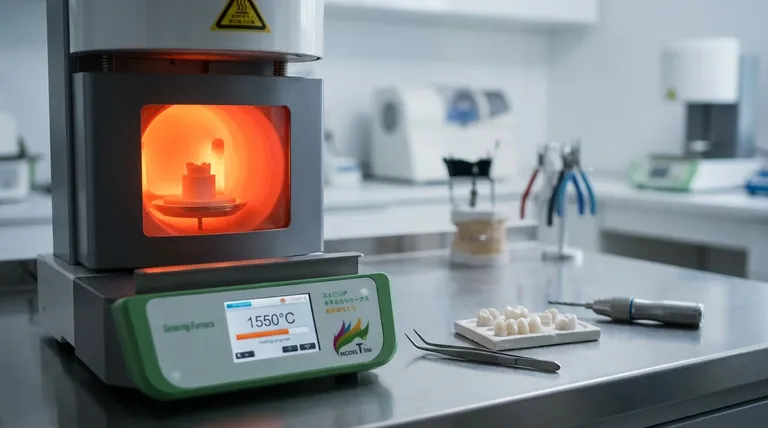 A sinterização é a etapa crítica que transforma um bloco de zircônia esfarelento e frágil na cerâmica final de alta resistência. Entender este processo revela por que o gerenciamento preciso da temperatura não é negociável.