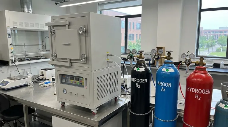 Em um forno de atmosfera controlada, o gás específico utilizado é uma variável de processo crítica, escolhido para proteger o material ou alterá-lo ativamente. Os gases mais comuns se enquadram em duas categorias distintas: gases inertes como nitrogênio e argônio, que previnem reações indesejadas, e gases reativos como hidrogênio e monóxido de carbono, que são usados para causar intencionalmente mudanças químicas na superfície do material.