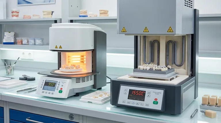 - Se o seu foco principal é o processamento de restaurações de zircônia: Você deve usar um forno de sinterização de alta temperatura equipado com elementos de aquecimento MoSi2 ou SiC para atingir a densidade e resistência necessárias.