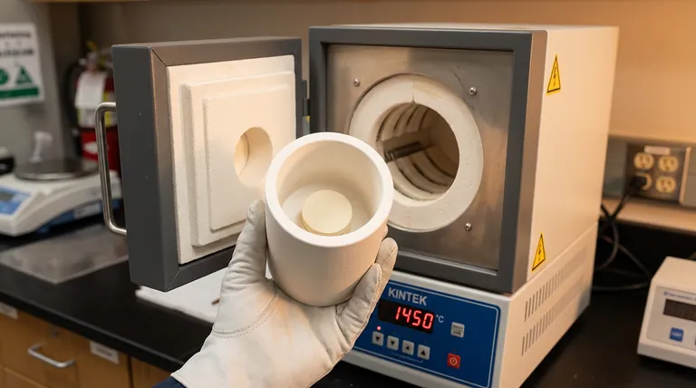 - Se seu foco principal é Integridade Estrutural: Garanta que seu programa de forno utilize uma taxa de aquecimento controlada (por exemplo, 2,5 °C/min) para proteger o cadinho contra choque térmico enquanto atinge a temperatura alvo de 1450 °C.